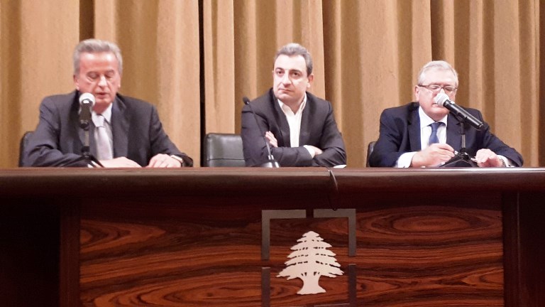 عقد وزير الصناعة وائل ابو فاعور وحاكم مصرف لبنان رياض سلامة ورئيس جمعية الصناعيين فادي الجميل مؤتمرا صحافيا مشتركا، في مبنى مصرف لبنان، للاعلان عن آلية جديدة لدعم القروض المصرفية التشغيلية للقطاع الصناعي بفوائد متدنية وبتسهيلات تشجيعية وتحفيزية.