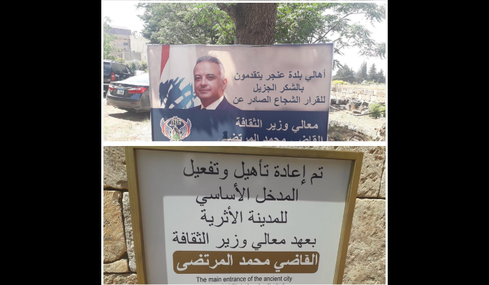 وطنية - افتتح وزير الثقافة في حكومة تصريف الأعمال القاضي محمد وسام  المرتضى مدخل المدينة الأثرية في عنجر، بحضور وزير الصناعة في حكومة تصريف الأعمال النائب جورج بوشكيان، رئيس بلدية عنجر وارتكس خوشيان ونائبه ناظاريت أندكيان، رئيس منطقة عنجر في حزب الطاشناق هاروت زاتليان، وأعضاء المجلس البلدي، ومخاتير، والارشمنديت أنانيا كوجانيان.