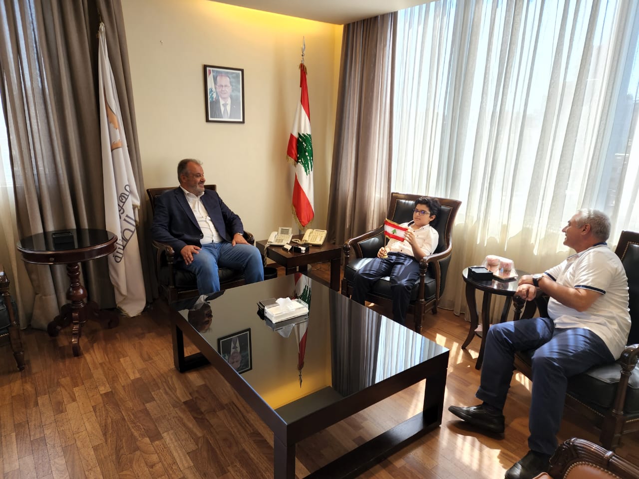 واستقبل بوشكيان التلميذ نور الدين طرابلسي ( 10 سنوات ) ابن مدينة صيدا، وهو في الصفّ الخامس في ثانوية حسام الدين الحريري في صيدا، وهنّأه على تميّزه عن رفاقه، وولعه بالصناعة والاختراع والبيئة. وحضر اللقاء رئيس الهيئة التنفيذية لجمعية IRALEB المهندس زياد الشماس.
