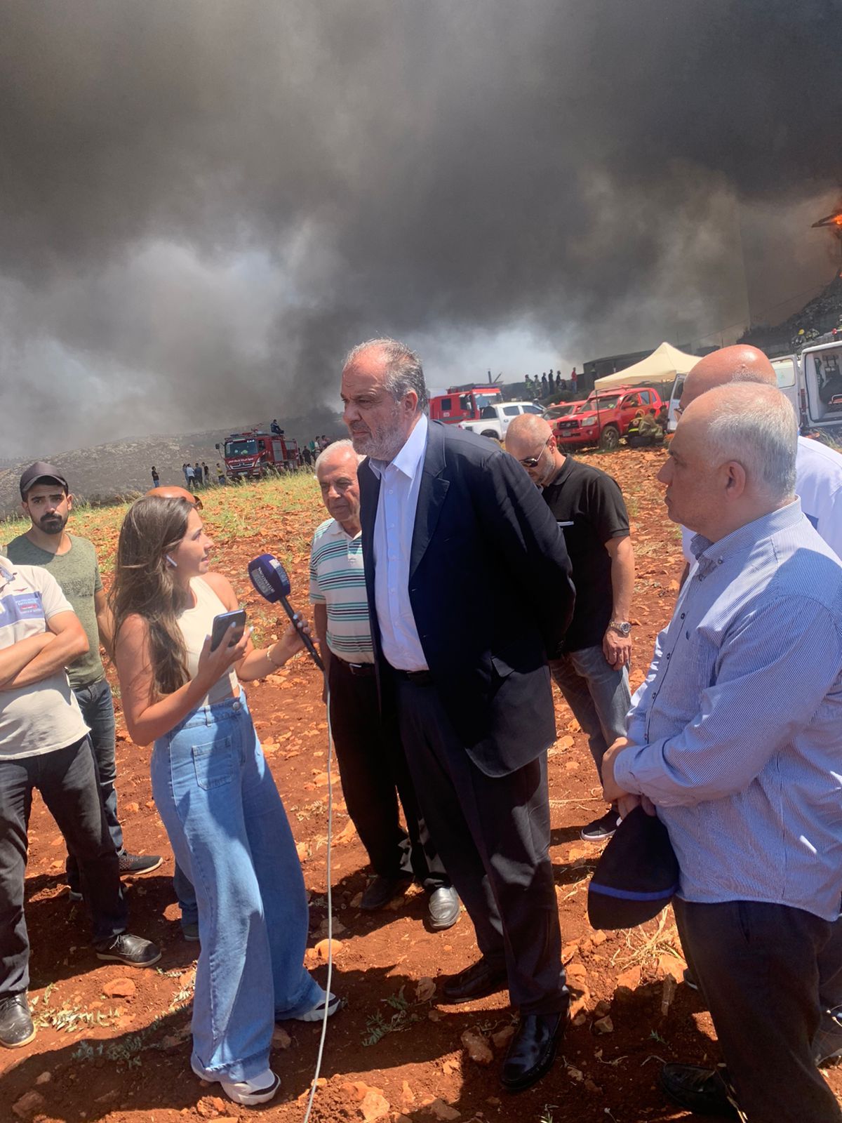 وشكر الوزير الجيش والفرق الأمنية والدفاع المدني والمجتمع الأهلي الذين تعاضدوا اليوم معاً لاطفاء الحريق.  وتمنّى أن يستعيد اصحابه التصميم على إعادة البناء وتشغيل المصنع مجدداً.