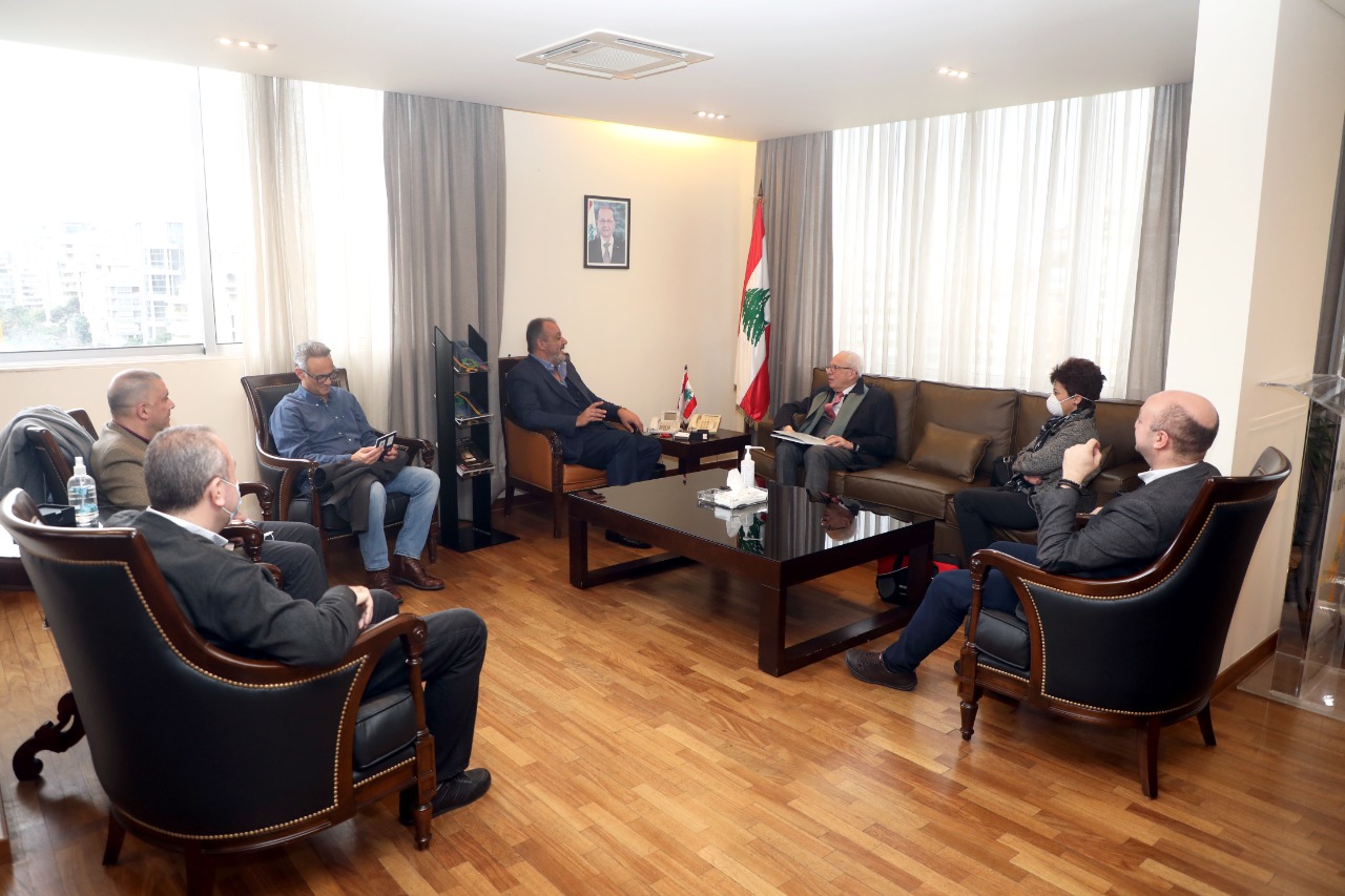 استقبل وزير الصناعة جورج بوشكيان ظهر اليوم في مكتبه بالوزارة رئيس المعهد الوطني للكرمة والنبيذ ظافر الشاوي وعضو مجلس الادارة المهندس جو - أسعد توما وممثّلي وزارة الصناعة والزراعة في المعهد المهندس مروان جوهر والمهندسة مريم عيد. علماً أن المجلس يتألف أيضاً من ممثّل وزارة الاقتصاد والتجارة الدكتور ايلي بو يزبك عن القطاع العام، وعن القطاع الخاص اضافة الى الشاوي وتوما، نائبة الرئيس المهندسة هبة المتني، والمهندس حسان رحال، والطيّار حبيب كرم.