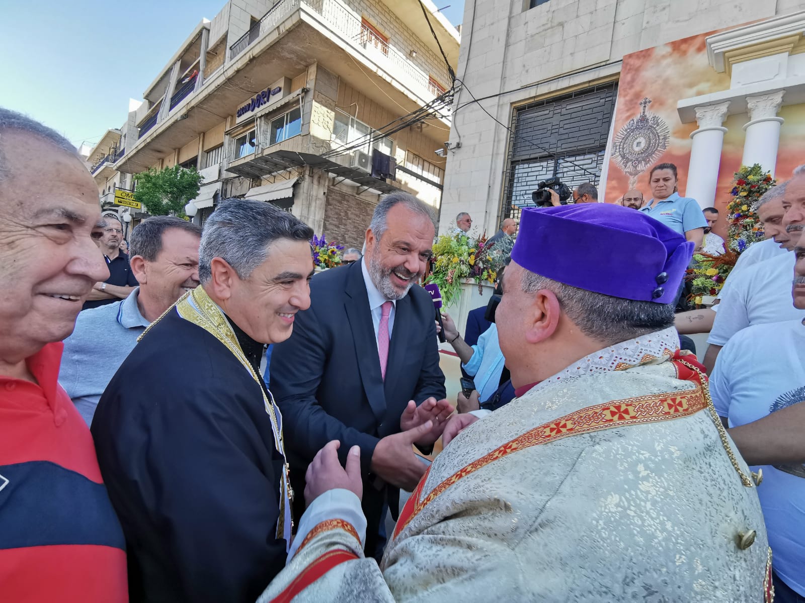 وكان لوزير  الصناعة في حكومة تصريف الأعمال النائب جورج بوشكيان كلمة في المناسبة:نحن "الزْحَالْني" ننتظر هذا اليوم المبارك من سنة لسنة ومن عشرات السنين. كونُه أصبح مناسبة دينية تقليدية وشعبيّة عامّة، نطوف فيه وراء القربان المقدّس للتبرُّك في أحياءِ زحلة وشوارِعِها، ونمرّ أمام بيوتِها ومؤسساتِها ومحالّها في تَطْوافٍ مهيب، وفي عادات توارَثْناها من آبائنا وأجدادِنا، ونورثها لأبنائنا وأحفادنا