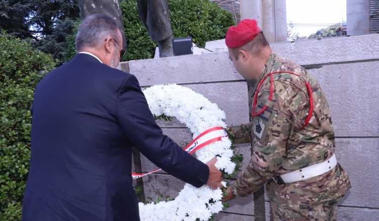 بوشيكيان وضع اكليلاً عند تمثال بيار الجميل في بكفيا