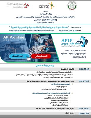 24 كانون الثاني 2024 دعت وزارة الصناعة بالتعاون مع المنظمة العربية للتنمية الصناعية والتقييس والتعدين  المزيد...